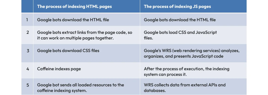 The process of indexing HTML pagesThe process of indexing Javascript pages
